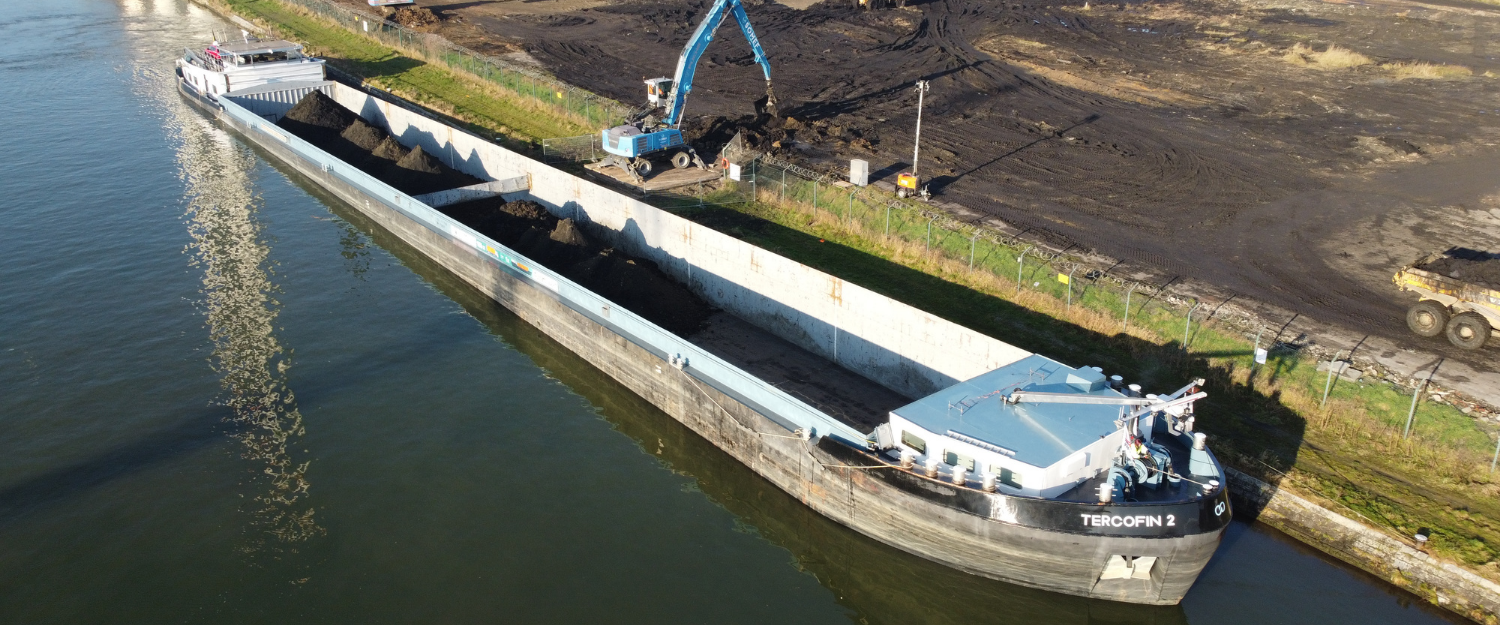 Assainissement des terrains de l’ancienne centrale des Awirs à Flémalle : 3 mois de chantier et 220.000 tonnes de terres acheminées par la voie d’eau