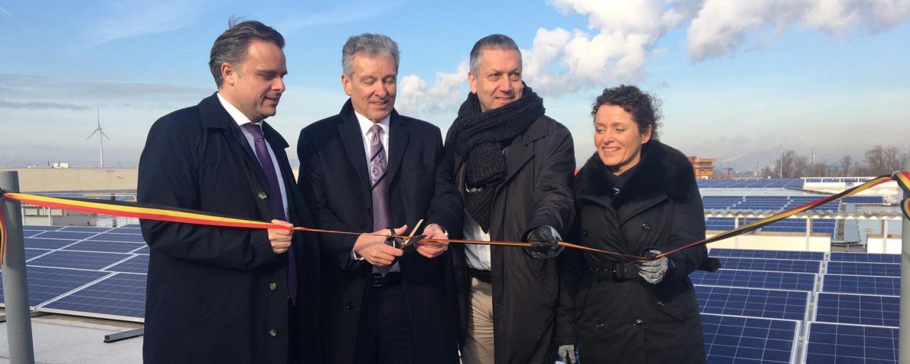 Federaal Minister van Post Philippe De Backer, Vlaams Minister van Energie Lydia Peeters, CEO van bpost Koen Van Gerven en CEO van ENGIE Fabricom Mark Dirckx hebben vandaag de zonnepaneleninstallatie op het dak van het bpost sorteercentrum van Antwerpen officieel ingehuldigd. Het is ondertussen het 4de sorteercentrum dat werkt met zonne-energie.